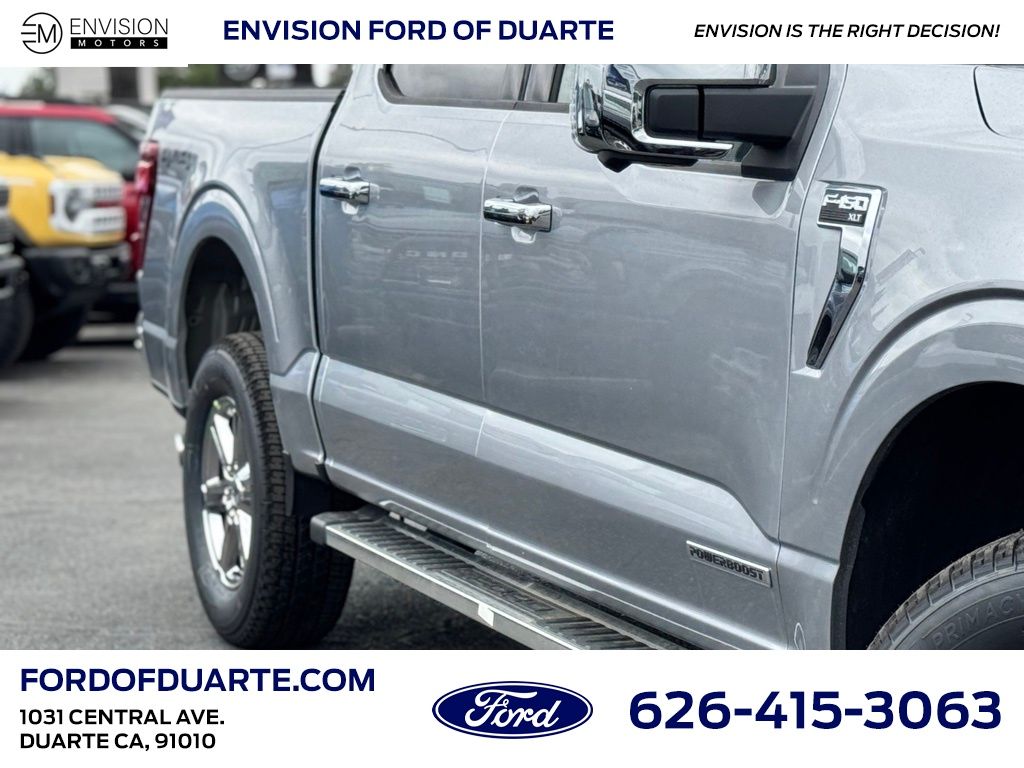 3.5L PowerBoost Full-Hybrid V6, 4WD, 360 Degree Camera, 400W Cab & Bed Outlets, 6" Angular Bright Anodized Step Bar, ABS brakes, Adaptive Cruise Control w/Stop & Go, Air Conditioning, Alloy wheels, Auto High-beam Headlights, Auto-Dimming Rear-View Mirror, Black Painted Grille w/Chrome Center Bar, Brake assist, Chrome Door & Tailgate Handles, Chrome Single-Tip Exhaust, Chrome wheels, Cloth 40/20/40 Front Seat, Cloth 40/Console/40 Front Seats, Connected Navigation, Console Worksurface, Driver State Detection, Dual-Zone Electronic Automatic Temperature Control, Electronic Stability Control, Emergency communication system: SYNC 4 911 Assist, Equipment Group 302A Mid, Evasive Steering Assist, Ford Co-Pilot360 Assist 2.0, Front Parking Sensors, Fully automatic headlights, Heated Front Seats, Illuminated entry, Integrated Trailer Brake Controller, Intelligent Access w/Push Button Start, Low tire pressure warning, Mobile Office Package, Partitioned Lockable Rear Storage, Power Glass Heated Sideview Mirrors, Power windows, Power-Sliding Rear Window, Rear Parking Sensors, Remote keyless entry, Remote Start System w/Remote Tailgate Release, Security system, SYNC 4 w/Enhanced Voice Recognition, Tow/Haul Package, Towing Technology, Traction control, Wheels: 18" Chrome-Like PVD, Wrapped Steering Wheel.
