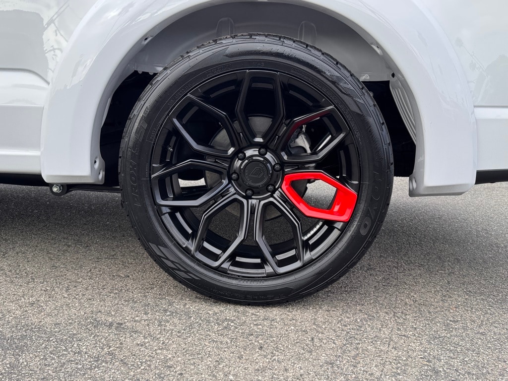 Aggressive exterior stance with custom paint, body-color fender flares, 22-inch wheels, and performance street tires designed to turn heads.