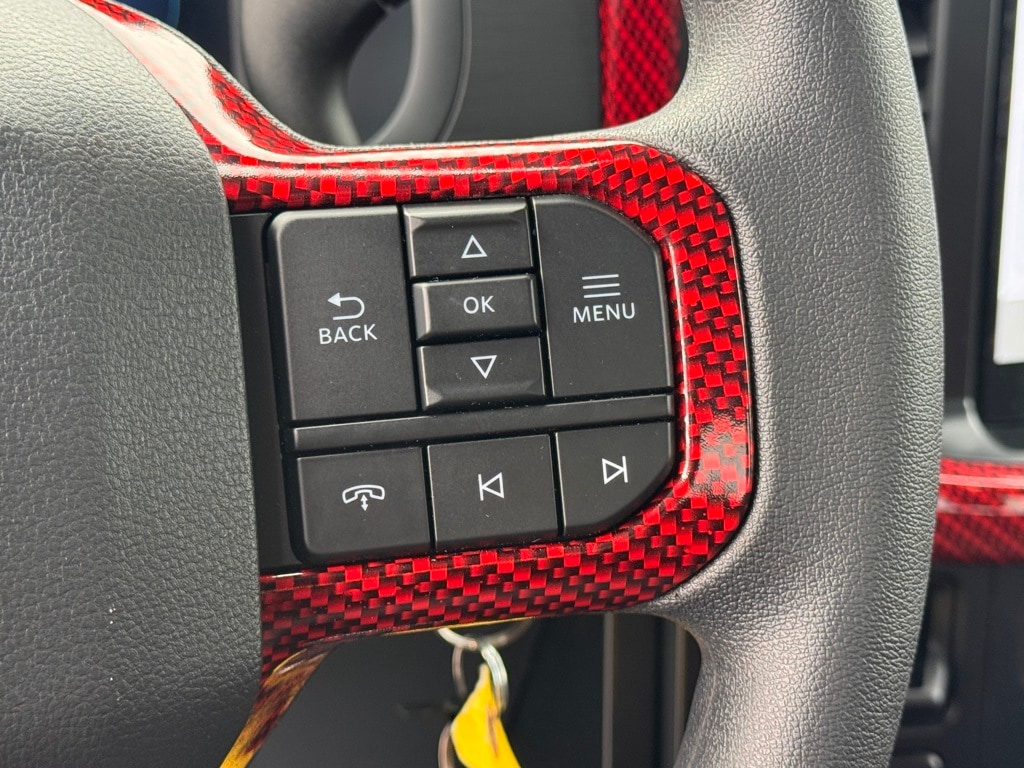 Refined interior featuring premium leather with custom stitching, carbon-fiber-style accents, and bespoke finishes that elevate the cabin beyond standard truck fare.